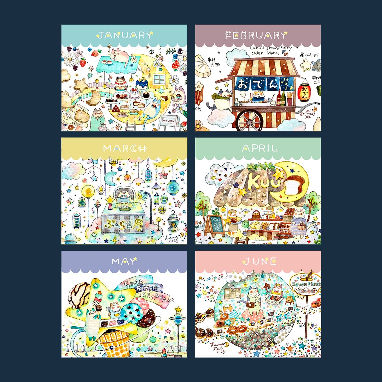 Lu*nyanのお店やさんをテーマにしたイラストで12ヶ月を楽しめます。